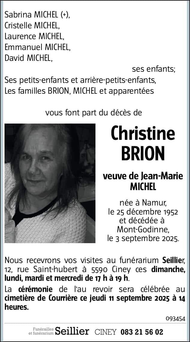 née à Scy, le 17 juin 1954 et décédée à Ciney, le 12 décembre 2024.