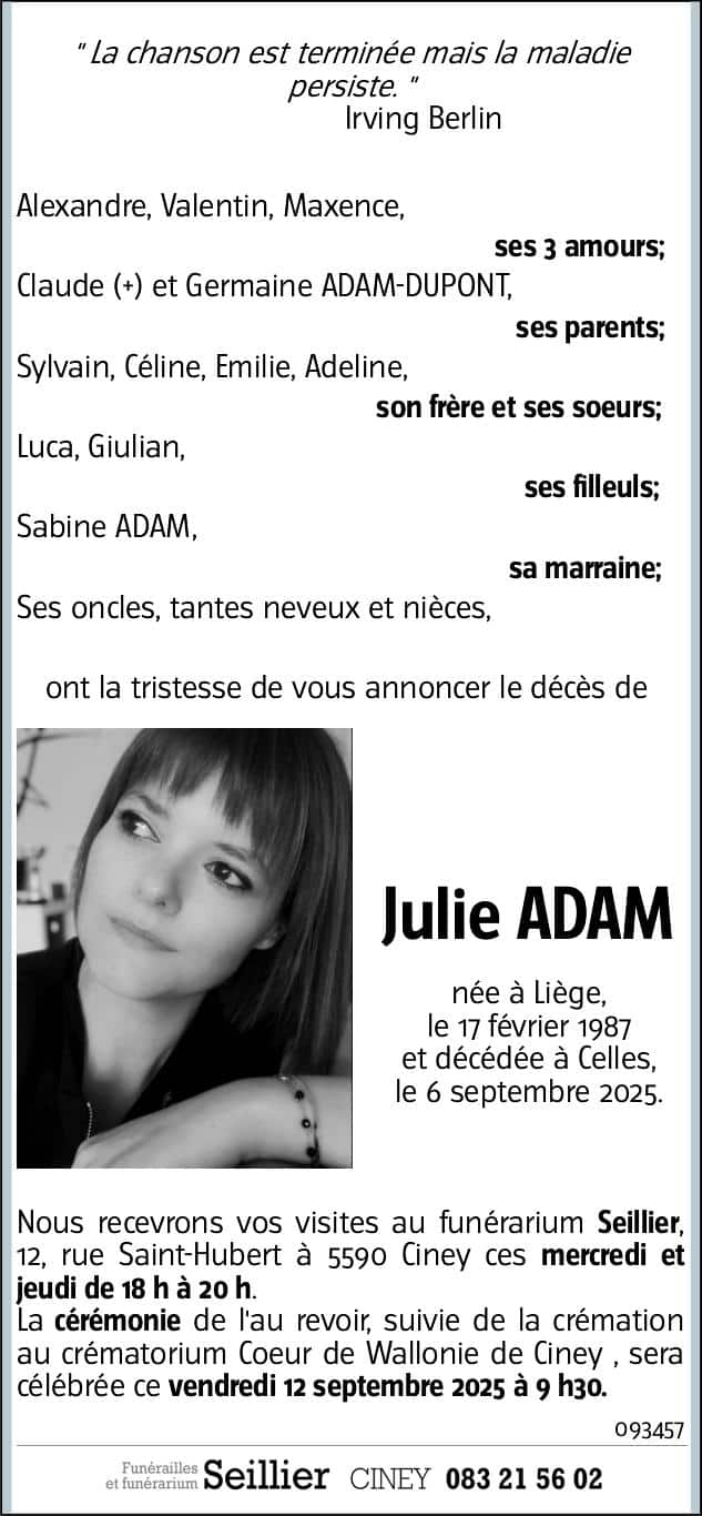 née à Namur, le 19 janvier 1971 et décédée à Ciney, le 27 juillet 2025