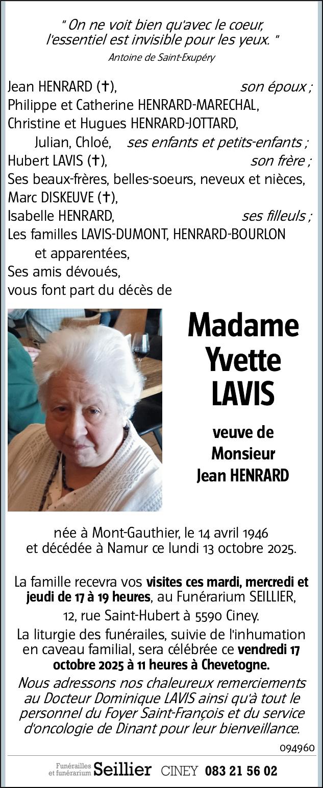Madame Yvette LAVIS